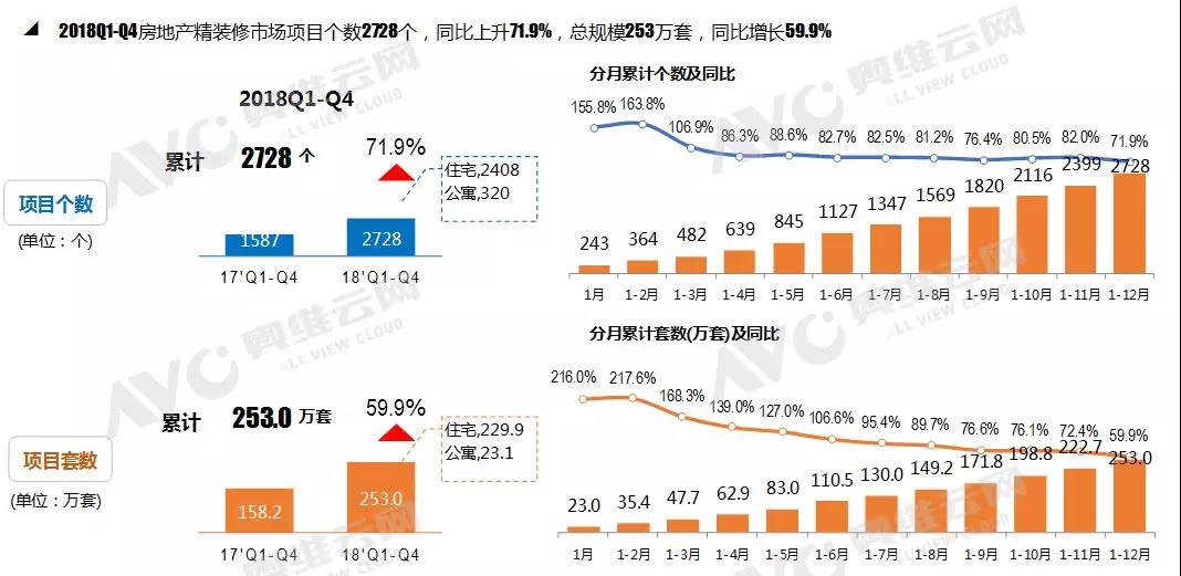 据奥维云网《2018年空调行业年度报告》显示: 2018年房地产精装修市场项目个数2728个,同比上升71.9%,总规模253万套,同比增长59.9%。其中空调配套规模达到66.9万套,同比增长79.7%。2018空调配套率达到26.4%,相比2017年提升了2.9个百分点,主要是受益于精装修市场规模的持续增长。
